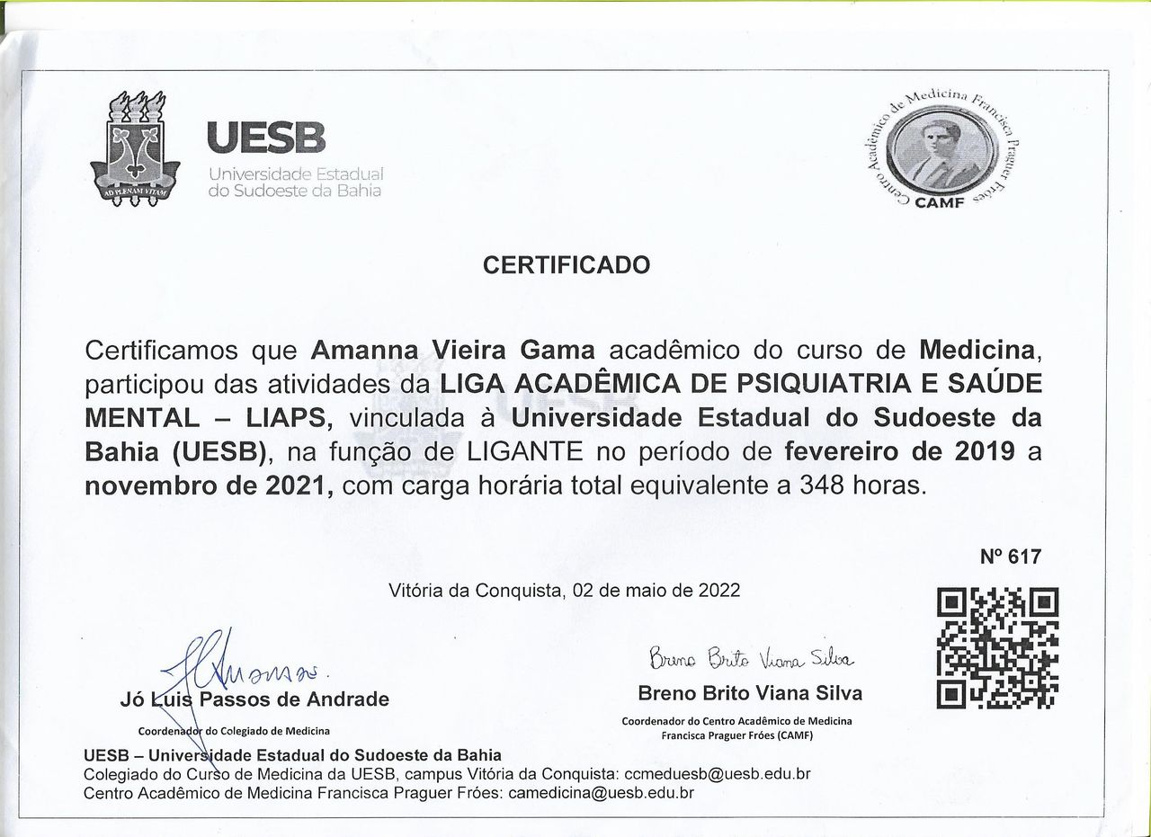 Prazer em te conhecer! Me chamo Amanna, sou Médica Residente de Psiquiatria pela Secretaria Municipal de Vitória da Conquista, com participação prévia em programa Mais Médicos e experiência em atendimento generalista em Posto de Saúde. Atendimentos voltados à saúde mental e transtornos psiquiátrico, consultas de check-ups e atendimento generalista.